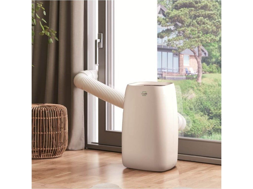 Navíc je tato klimatizace vybavena funkcí časovače spínání. Odvod odpadního tepla a vlhkosti je zajištěn flexibilní hadicí, která je protažena pootevřeným oknem či dveřmi a navíc je u tohoto modelu touto hadicí odváděn automaticky i kondenzát, čímž odpadá jeho ruční vylévání.