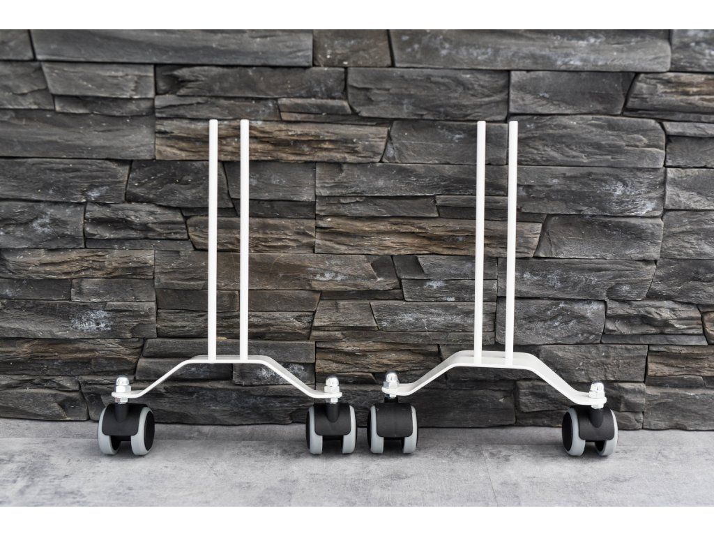 Pojízdný stojan rozšiřuje snadnou manipulaci s topným panelem. Pomocí pojízdných patek je možné přemístit topný panel z místa na místo a kdekoliv v prostoru. Patky lze jednoduše vyndat a panel zavěsit na zeď, nebo je vyměnit za pevné stojany.